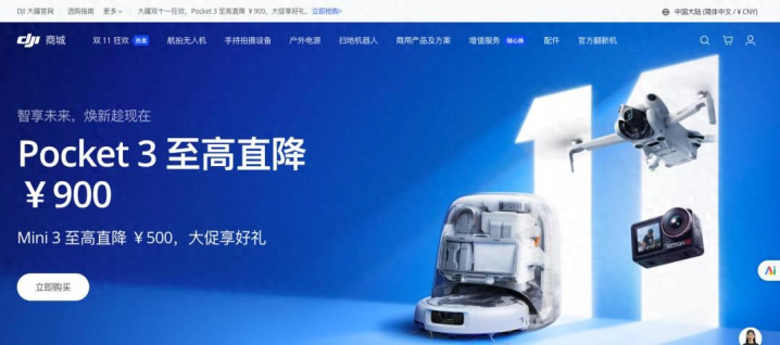 10月9日,国庆长假结束后第一天,大疆开始筹备“双11”大促。此次大促,包含运动相机、全景相机、入门航拍机等多款拍摄产品均大幅度降价,甚至8月刚发布的扫地机器人和7月上市的全景相机也在其中。